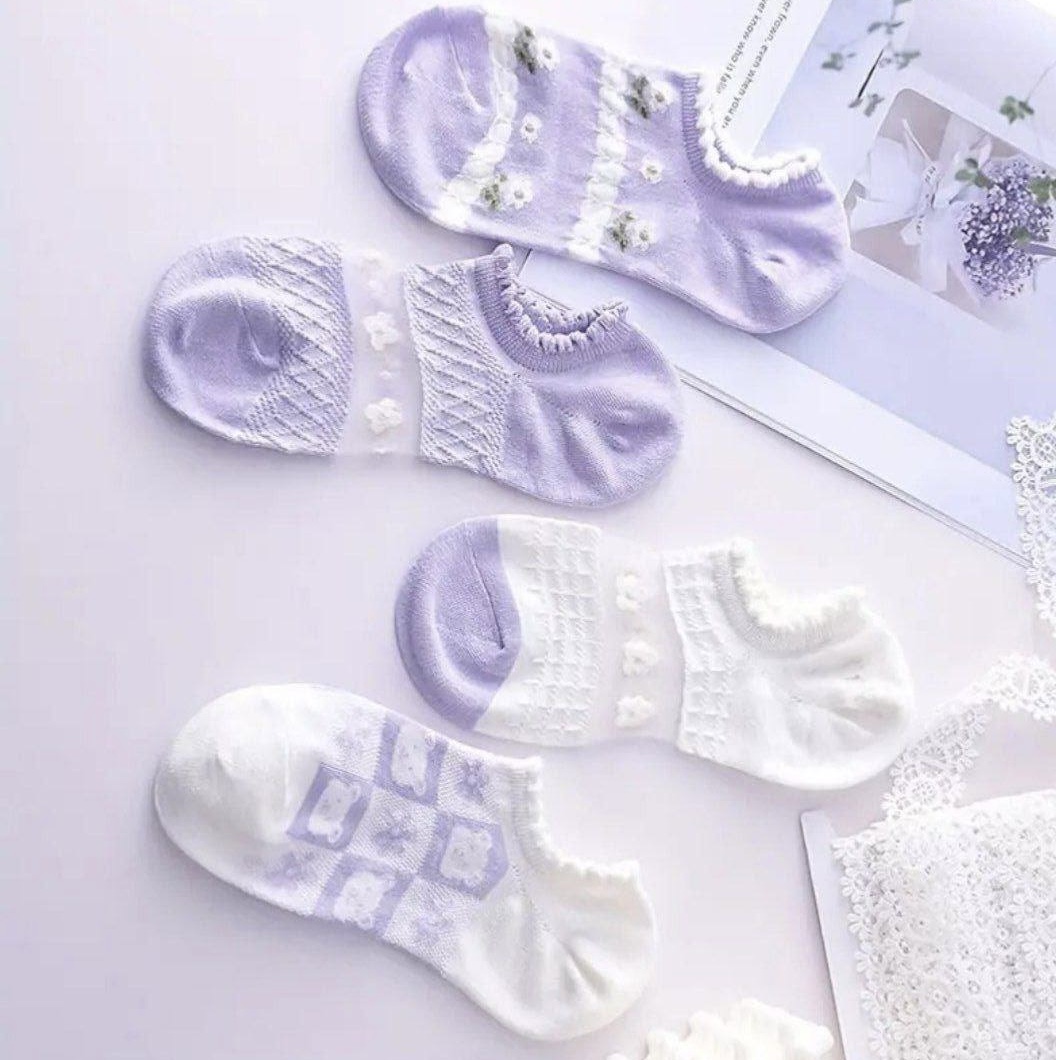 ست ۵ عددی جوراب مچی شیشه ای طرح شکوفه