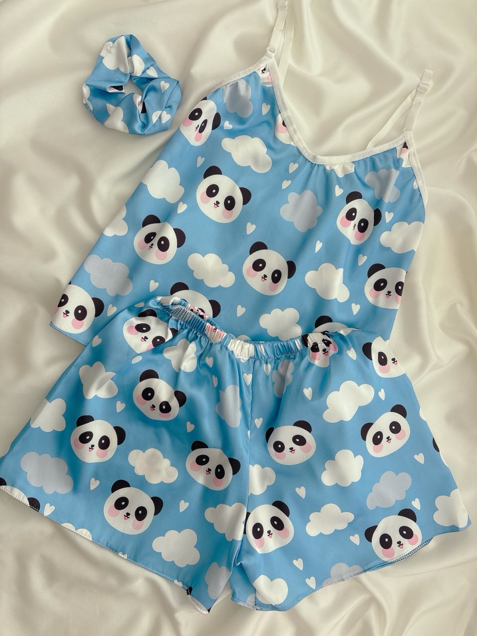 ست تاپ و شورتک ساتن طرح پاندا